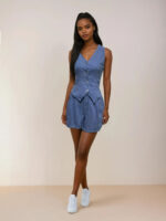 ? Fit: Tailored sleeveless vest with adjustable tie-back; relaxed high-waist shorts.