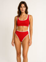 - Style: Trendy split two-piece with high-waist bottoms for a sculpted silhouette.