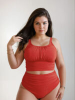 Feel confident poolside or at the beach in this plus-size high-waisted bikini. The tummy-contouring bottoms and adjustable top combine style and comfort for every curvy figure.