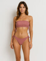 • Style: Strapless tube bandeau top with adjustable side drawstrings & matching tie-side bottoms.